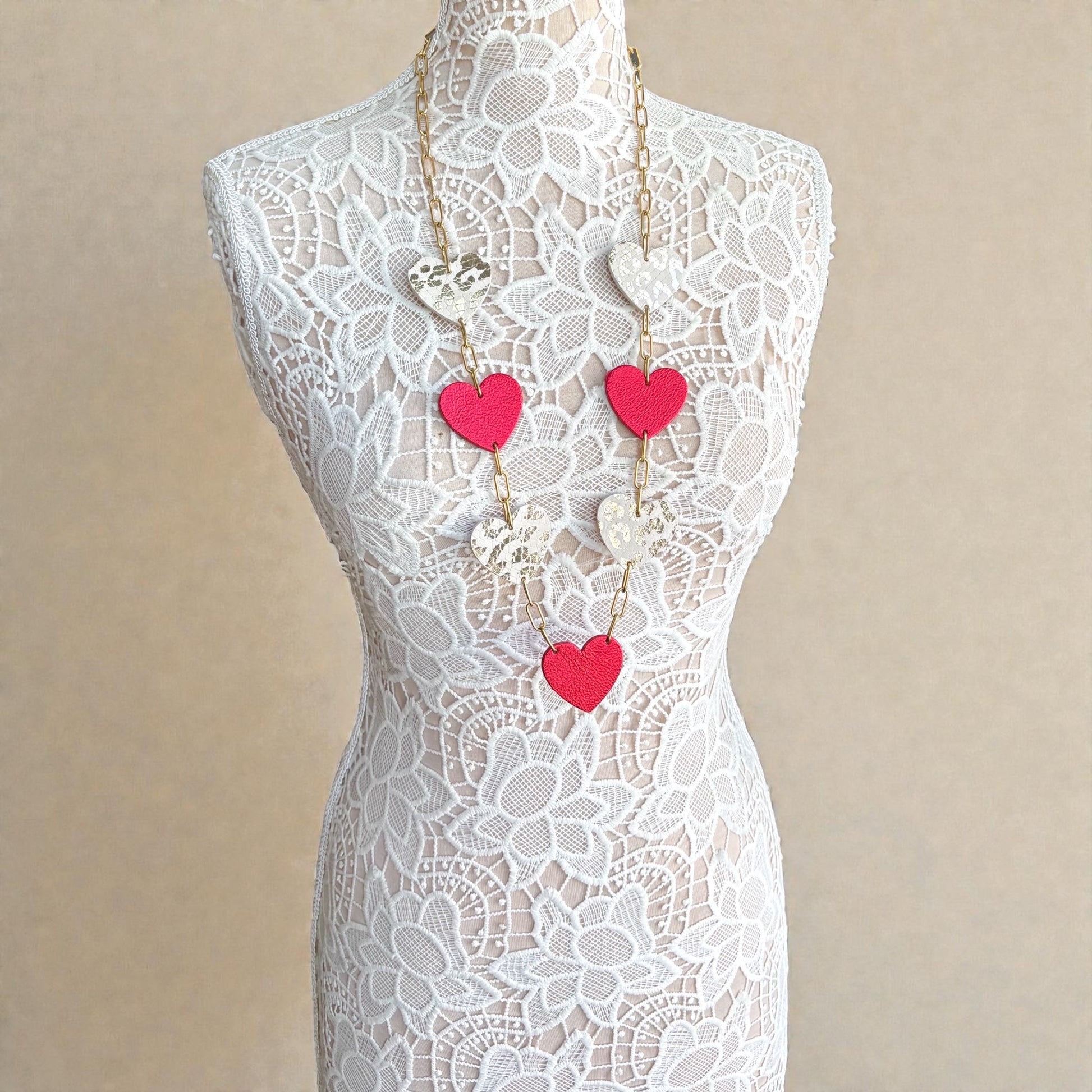 LEATHER HEARTS NECKLACE